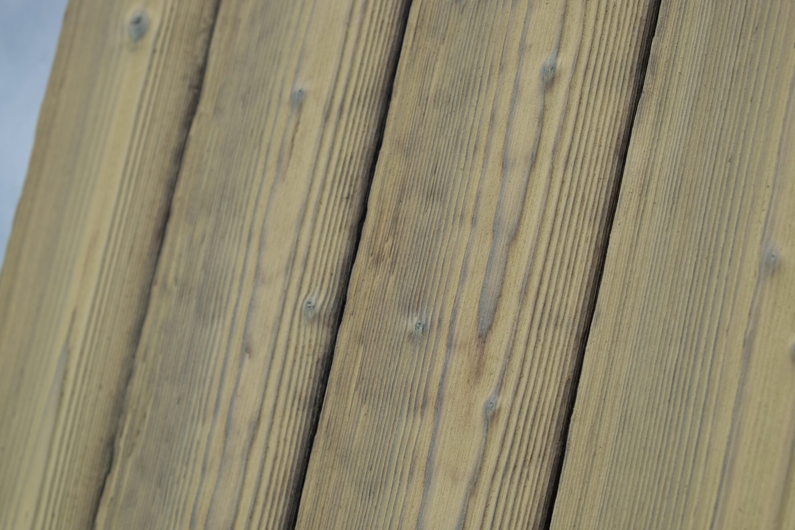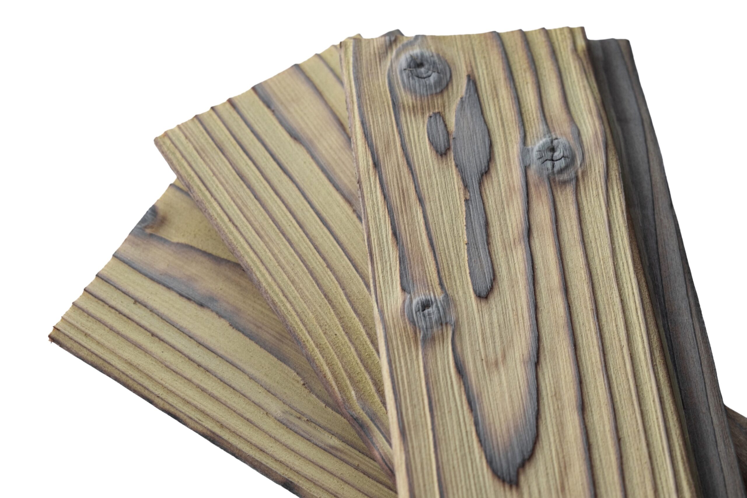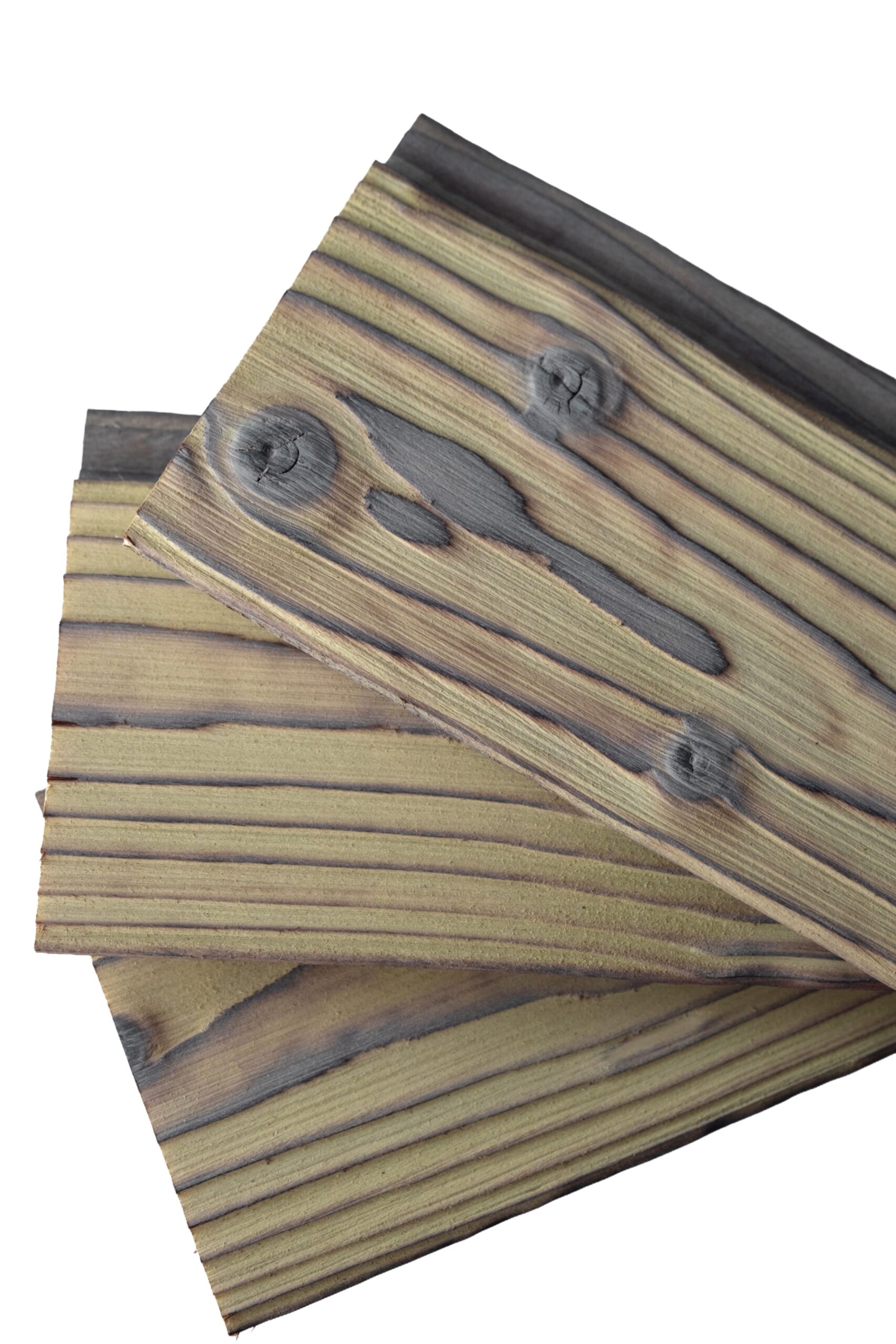 Tai šviesaus geltono atspalvio degintos eglės dailylentės, pasižyminčios unikaliu kontrastu ir vizualiniu lengvumu. Gelsva spalva kombinuota su ryškiomis rievėmis ir šakomis, kurios suteikia apdailai gylio ir yra puikus pasirinkimas pajūrio architektūrai dėl savo spalvinės gamos ir estetinio suderinamumo su pakrantės peizažu.