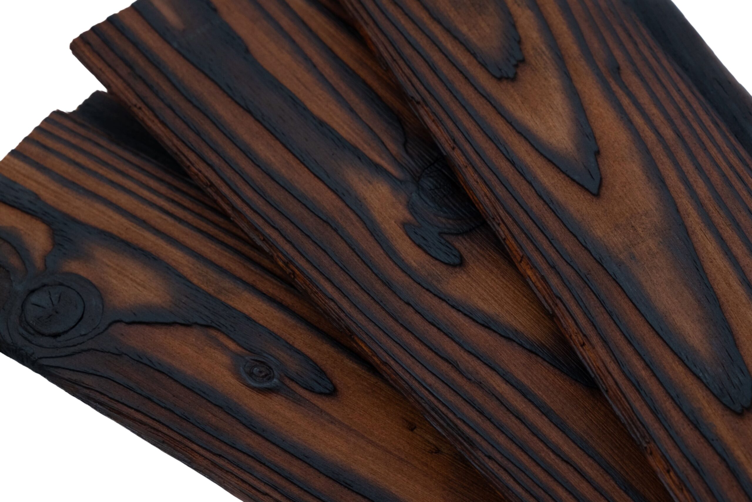 Medienos deginimas (Shou Sugi Ban technologija), dvigubas mechaninis anglies šukavimas